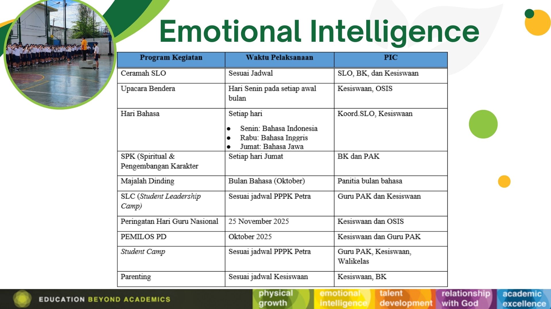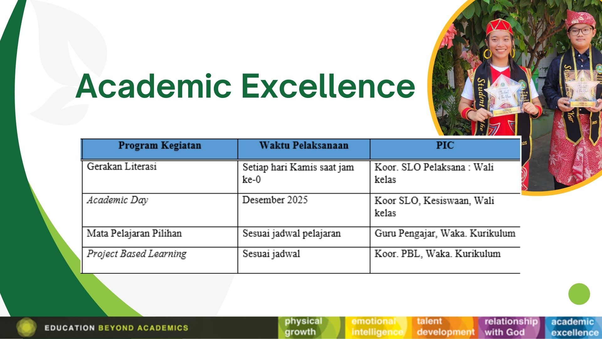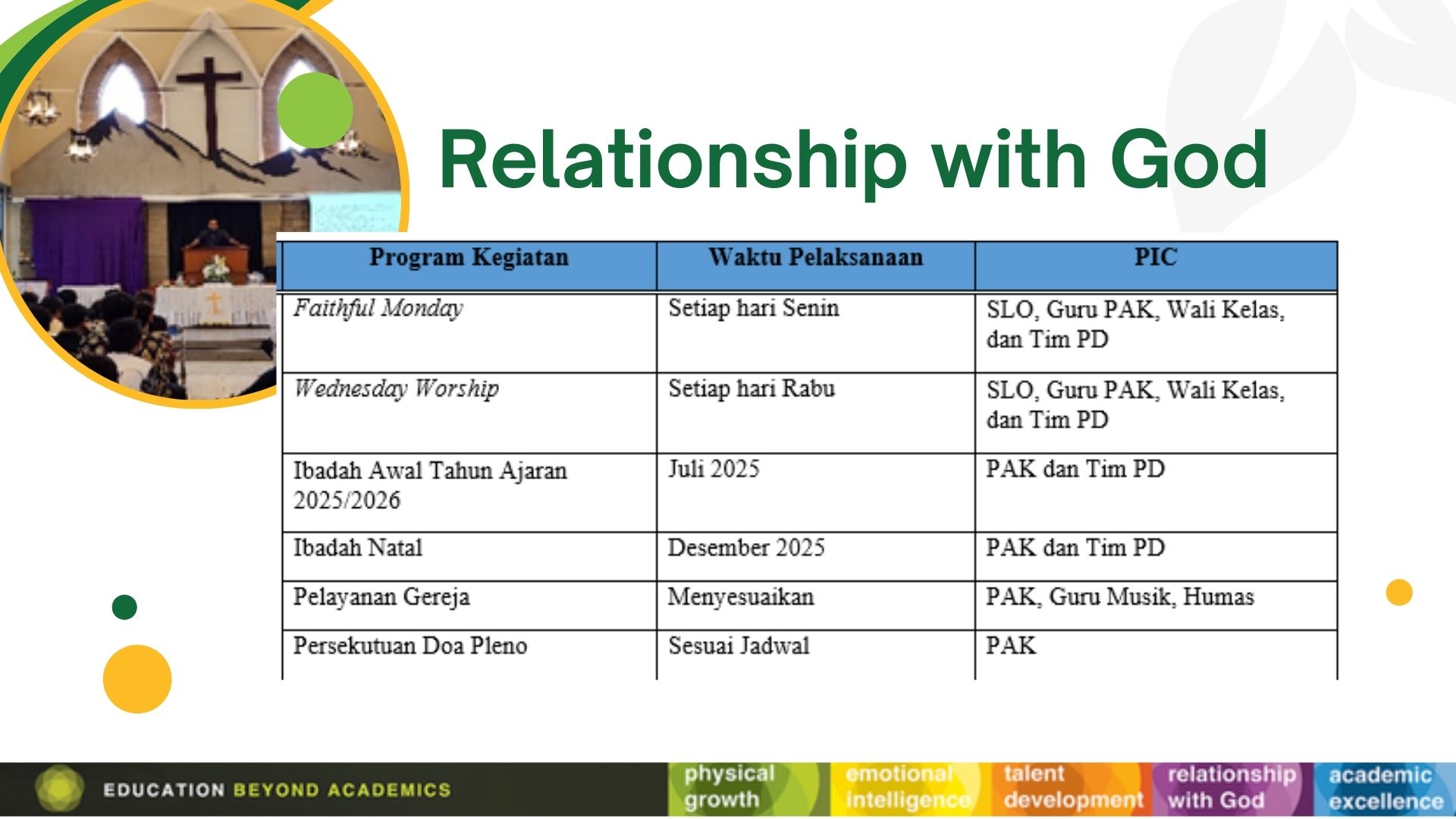 Segala puji dan syukur kita panjatkan kepada Tuhan yang telah menyertai dan memampukan kita memulai tahun ajaran 2025/2026 dengan penuh semangat dan antusiasme. Setiap pergantian tahun ajaran merupakan momentum baru untuk terus bertumbuh dan memberikan pelayanan pendidikan terbaik, terutama bagi para peserta didik.